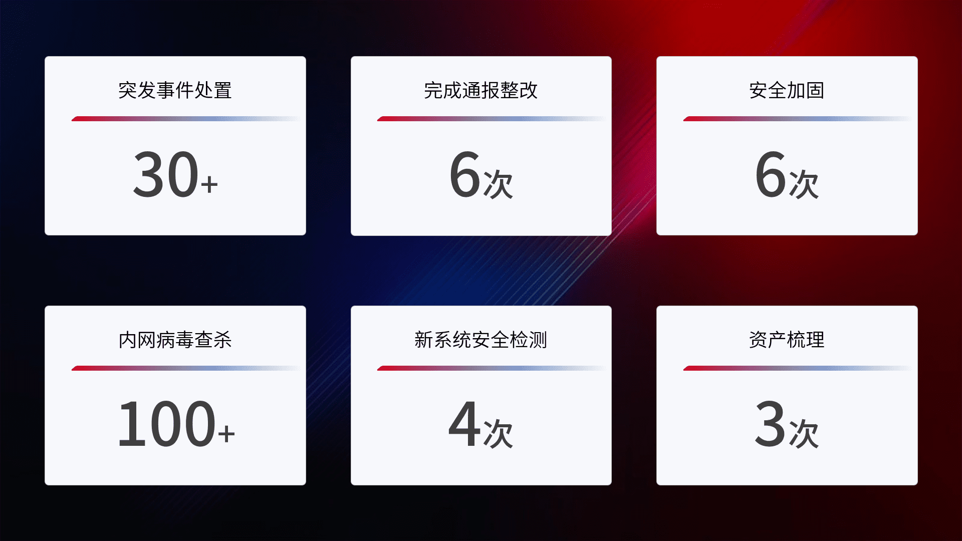 网络安全加固与风险管理:通过技术加固手段,,,,如加强区域隔离,,,,缩减攻击内网横向移动的范围;优化现有网络安全管理制度,,降低网络威胁暴露面,,,减少被黑客攻击的可能性。。